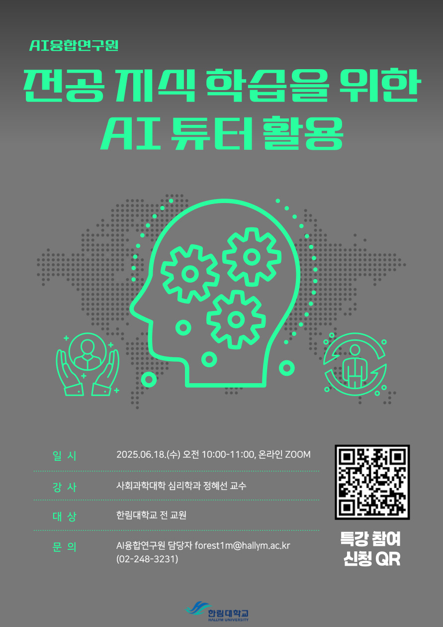 2025학년도 1학기 AI 결합 교과목 'AI 튜터' 유형 적용 수업 사례 특강을 진행합니다.
