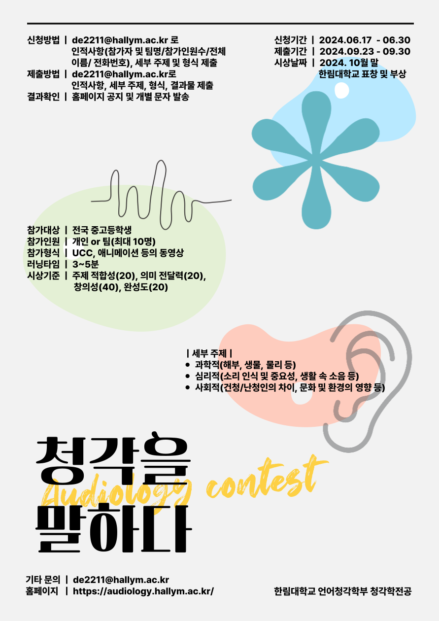 안녕하세요. 한림대학교 언어청각학부 청각학과입니다.