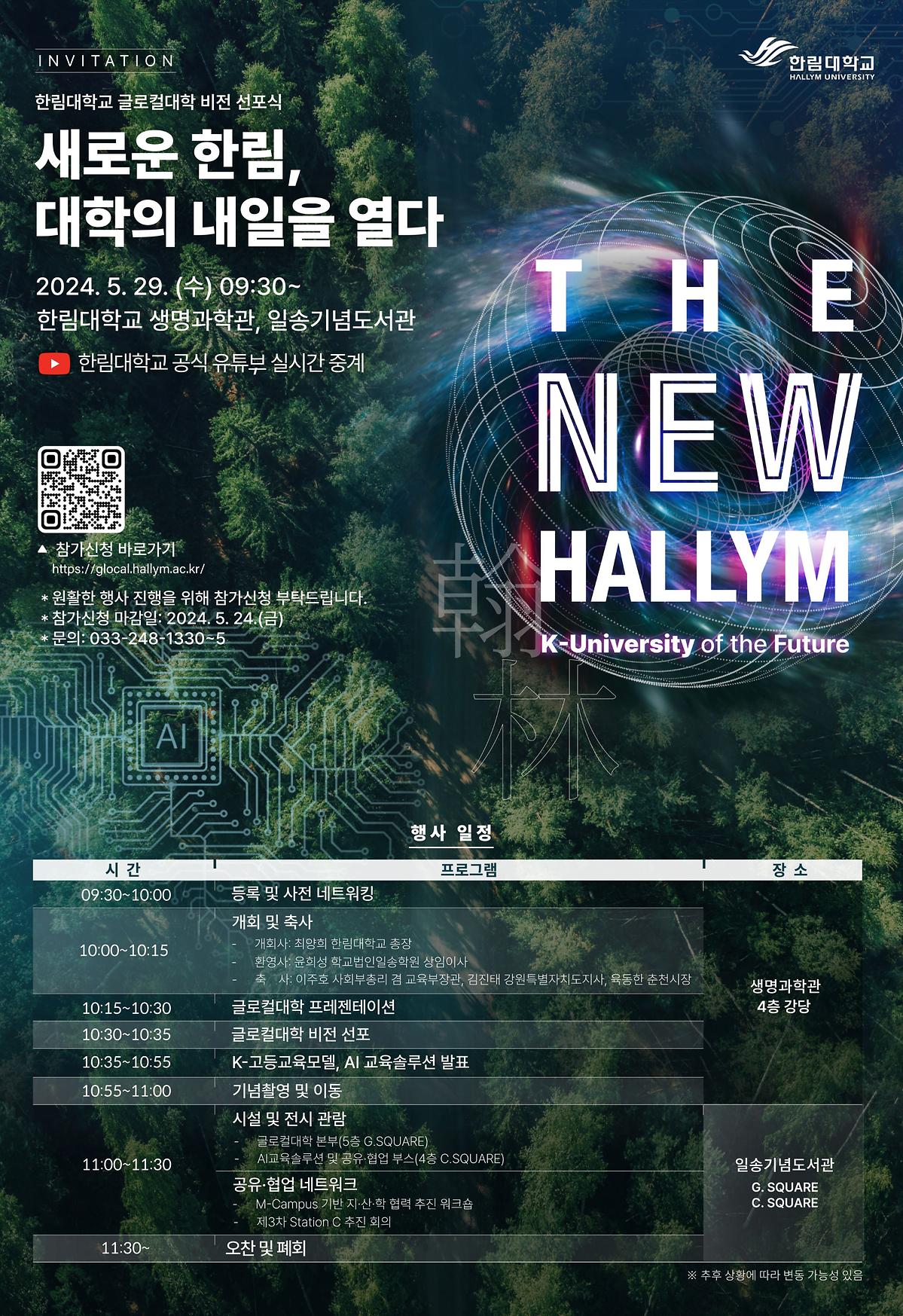 [초청장] 한림대학교 글로컬대학 비전 선포식에 초대합니다