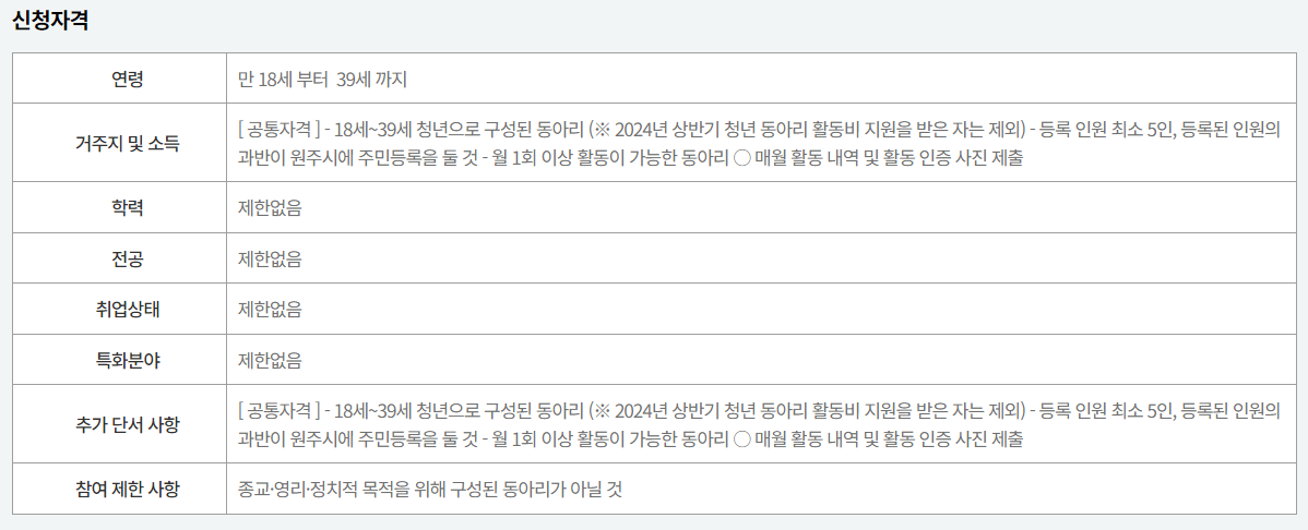 [원주시] 청년 동아리 활동비 지원 대상 하반기 모집 공고