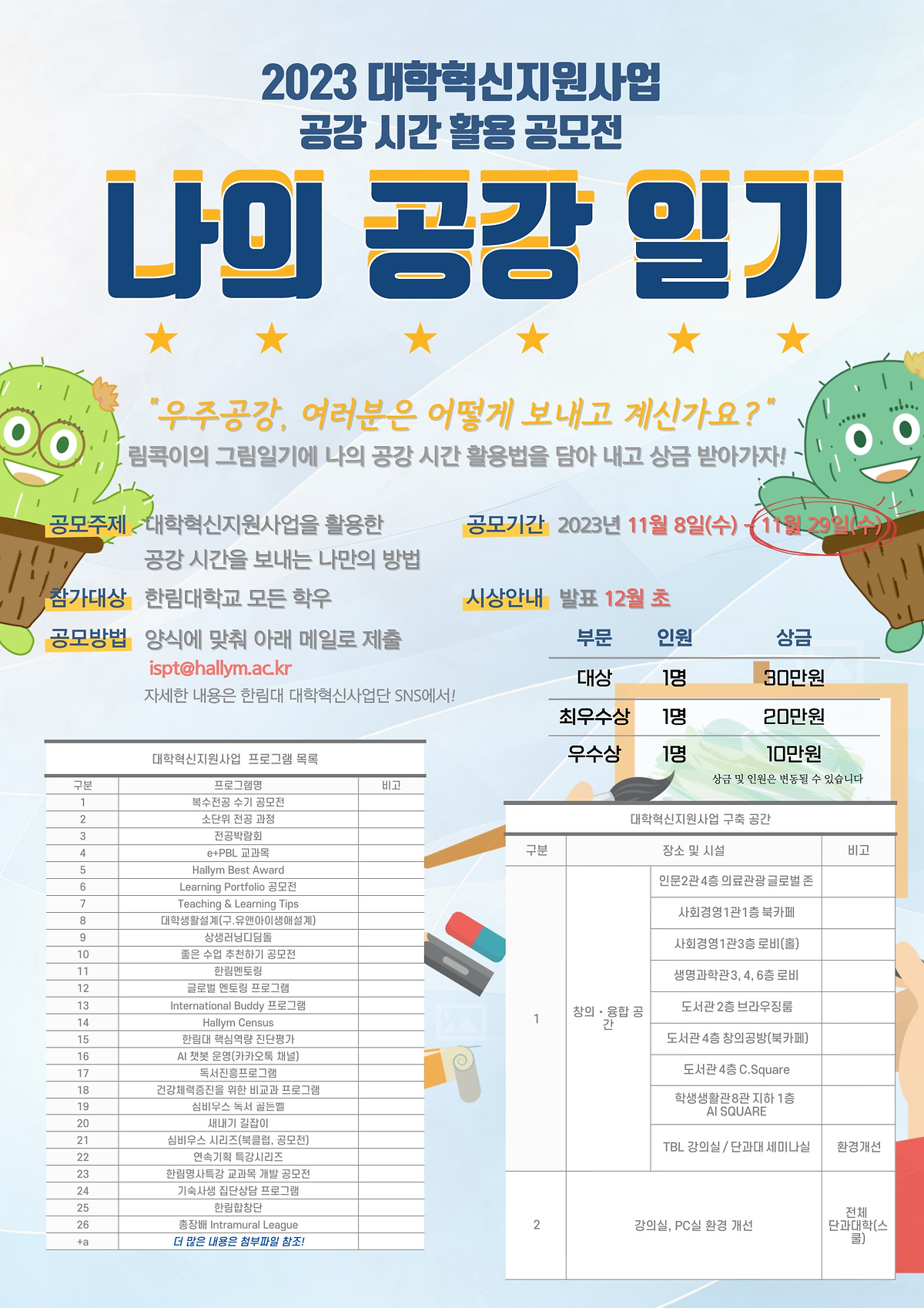 👉 대학혁신사업단 홈페이지: https://ispt.hallym.ac.kr/ispt/5.notice/ispt_notice.do?mode=view&articleNo=59208