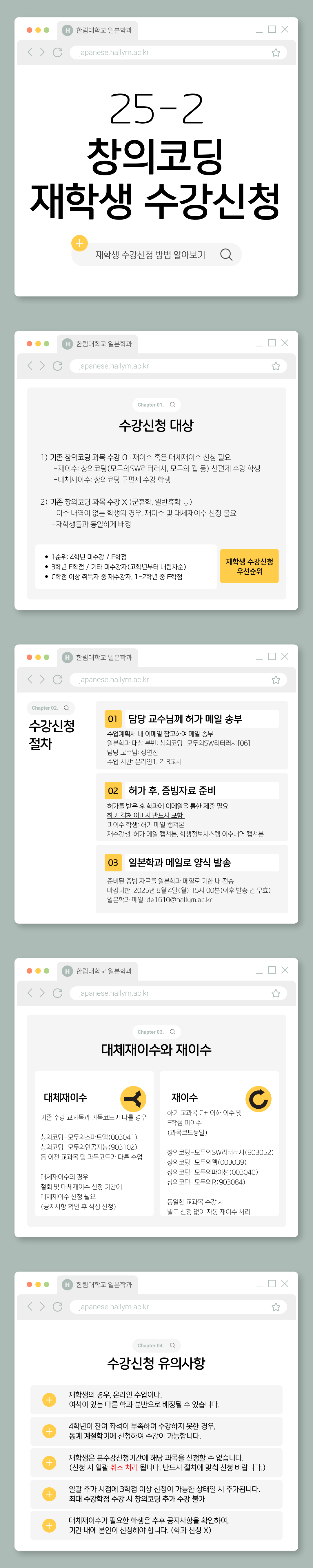 해당 교과목은 졸업 요건에 해당하므로 대상 학생은 절차 확인 후 신청 바랍니다.