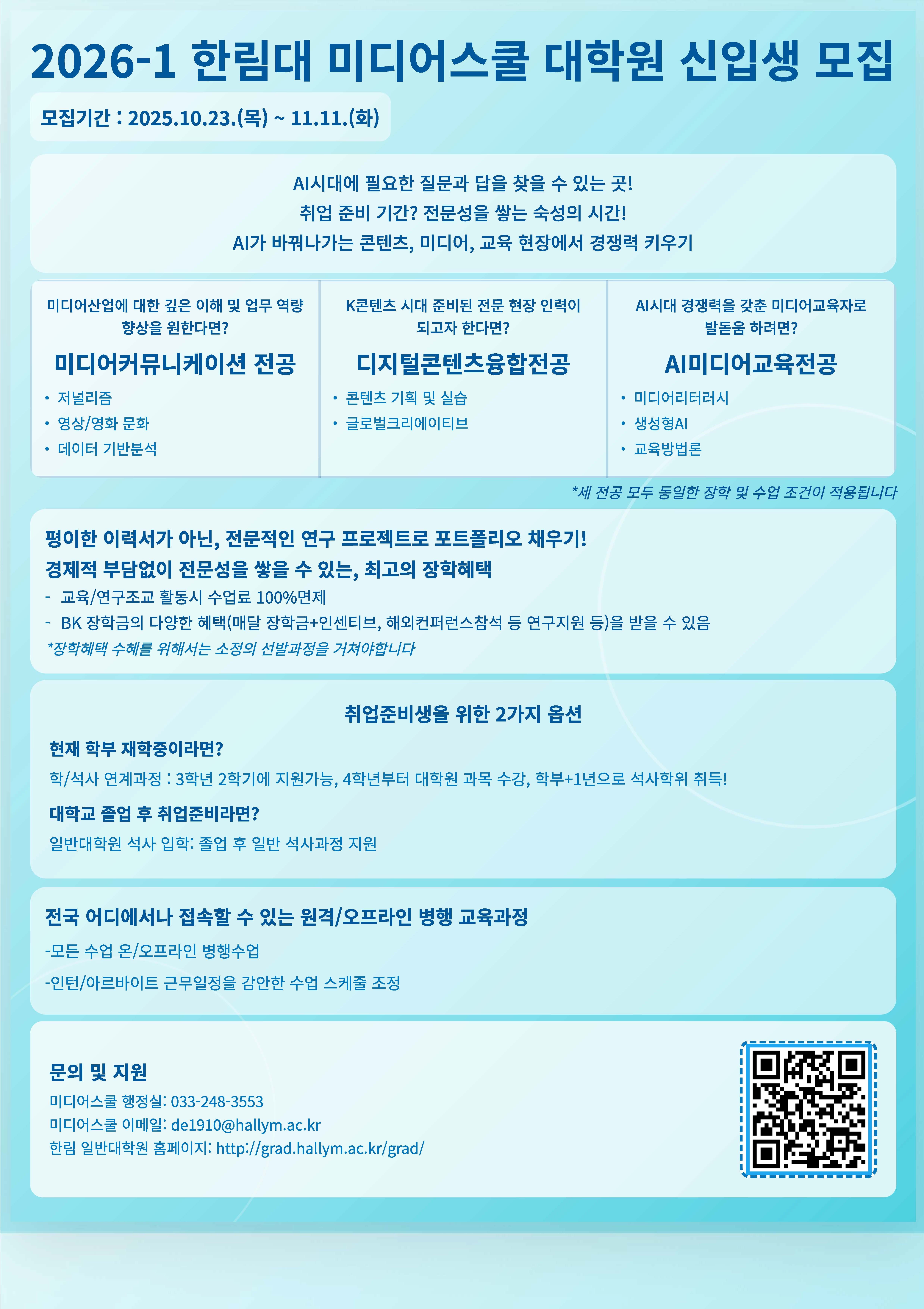 2026-1 한림대 미디어스쿨 대학원생 모집