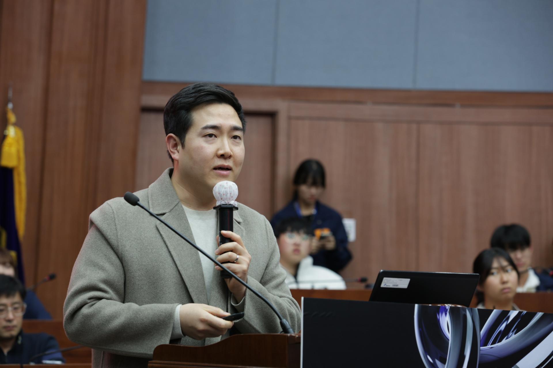 사일런트디스코 김철환 대표께서는 ‘한강무소음DJ파티’를 바탕으로 [한강무소음DJ파티 기획자가 하는일] 이라는 주제로 강의를 진행해주셨고,강연 이후 학생들의 질문을 토대로 패널토론을 진행하였습니다.