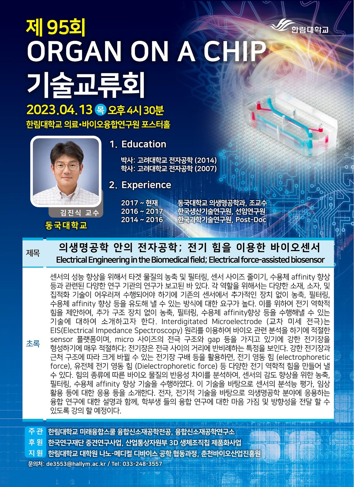 제 95회 Organ on a Chip 기술교류회가 2023년 04월13일 진행되었다.