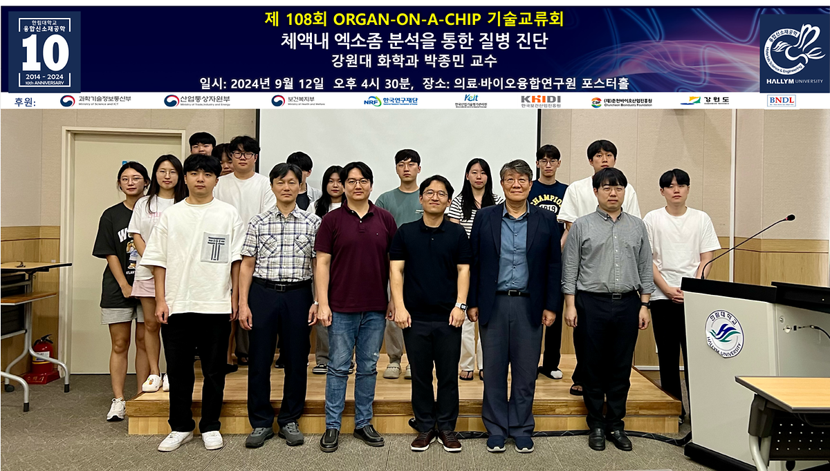 이번 기술교류회에서는 강원대 박종민 교수를 연사로 모시고 '체액내 엑소좀 분석을 통한 질병 진단'을 주제로 강연이 진행되었다.