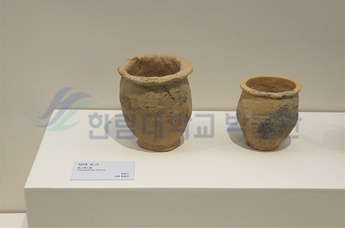 덧띠 토기는 청동기시대 후기 또는 초기철기시대 유적에서 출토되는 대표적인 토기입니다. 덧띠 토기는 ‘점토띠토기’ ‘아가리띠토기’라고도 불리며, 아가리(口緣) 겉 부분에 별도로 만든 점토띠를 붙인 것이 특징입니다.