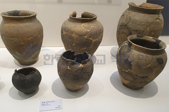 경질 민무늬 토기는 한강 유역의 서울 풍납동, 춘천 중도와 함께 가평 이곡리, 마장리, 양평 대심리, 양양 가평리 유적 등에서 출토되었습니다. 뿐 만 아니라 부산 조도, 김해 회현리, 창원 성산, 삼천포 늑도 조개무지, 해남 군곡리 조개무지, 광주 신창동, 남원 세전리 유적 등 남부지역에서도 출토되고 있어서, 철기시대의 토기 문화를 볼 수 있는 대표적인 토기의 하나하고 할 수 있습니다.