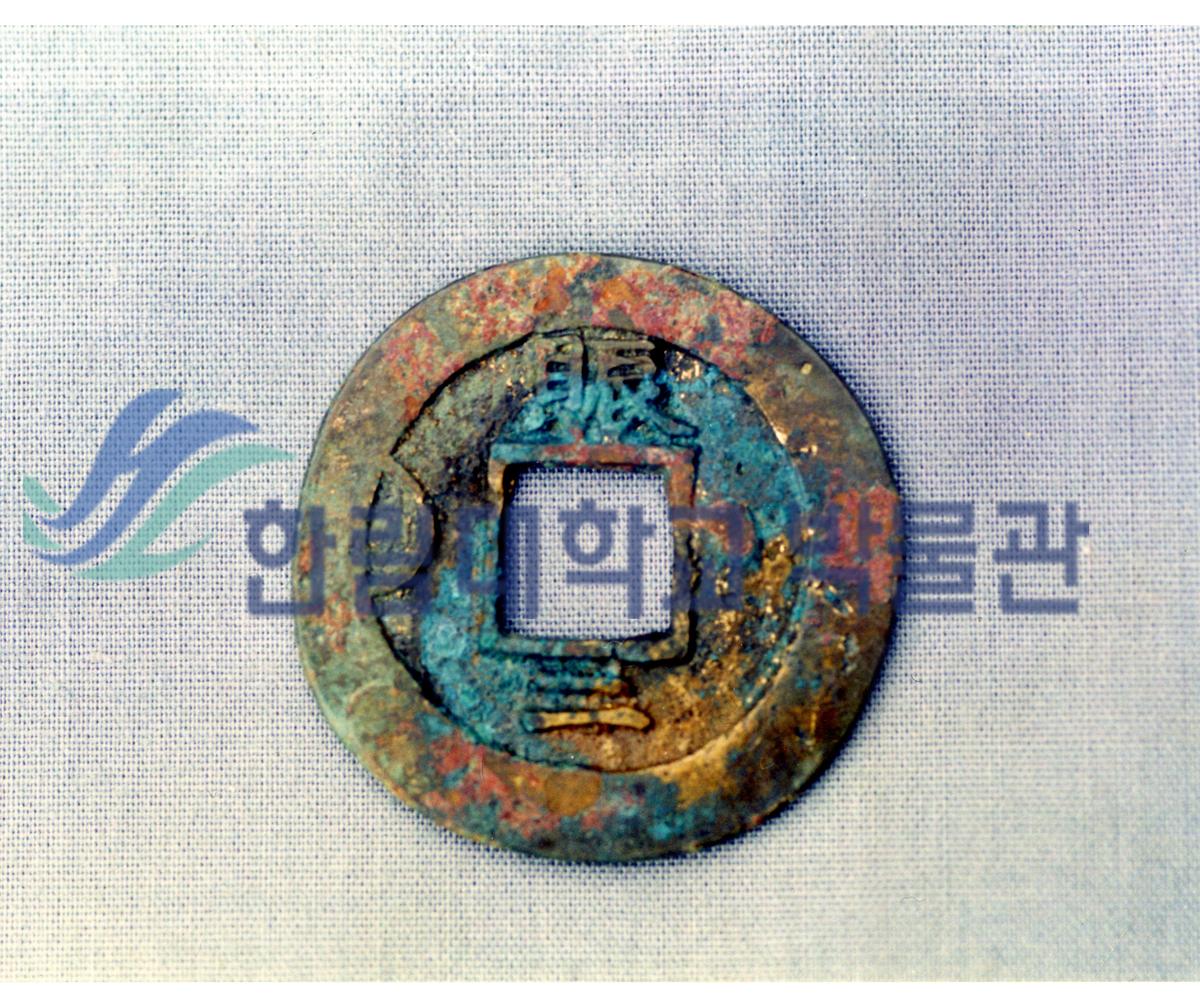 강화 조선궁전지에서 출토된 상평통보이다.모양은 기본적으로 외형이 납작하고 둥근 가운데 네모난 구멍이 있으며, 앞면에는 ‘상평통보(常平通寶)’라고 글자가 쓰여져 있다. 상평(常平)은 ‘상시평준(常時平準)’의 준말인데 유통가치에 항상 등가(等價)를 유지하려는 의도와 노력을 그대로 반영한 표시였다.