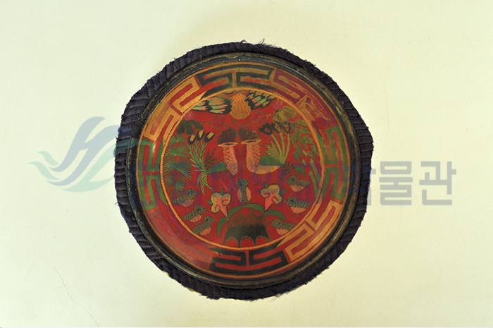 이 베갯모는 상단에는 구름과 해, 벽오동 잎, 중앙에는 한 쌍의 봉황과 일곱 마리의 새끼 봉황, 좌우에는 소나무와 대나무, 하단에는 돌에 핀 불로초, 테두리에는 아(亞)자 문양을 수놓았습니다. 벽오동(碧梧桐)에 깃들여 사는 아홉 마리의 봉황을 수놓은 베개를 구봉침(九鳳枕)이라고 하는데, 불로장생과 자손들이 집안에 가득하기를 바라는 마음을 표현한 것입니다.