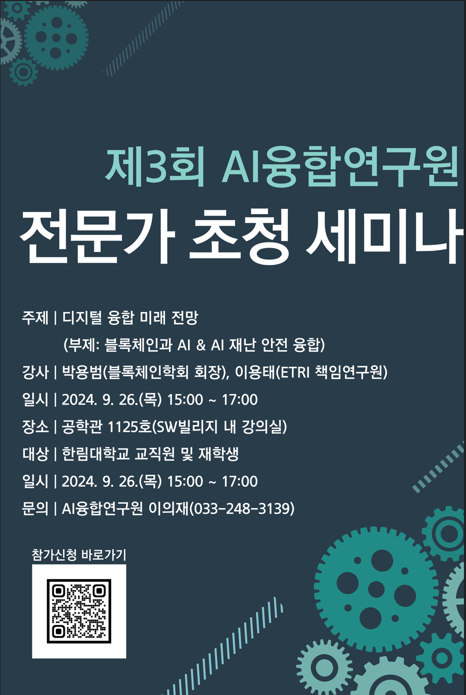 [AI융합연구원] 제3회 AI융합연구원 전문가 초청 세미나 참가 안내