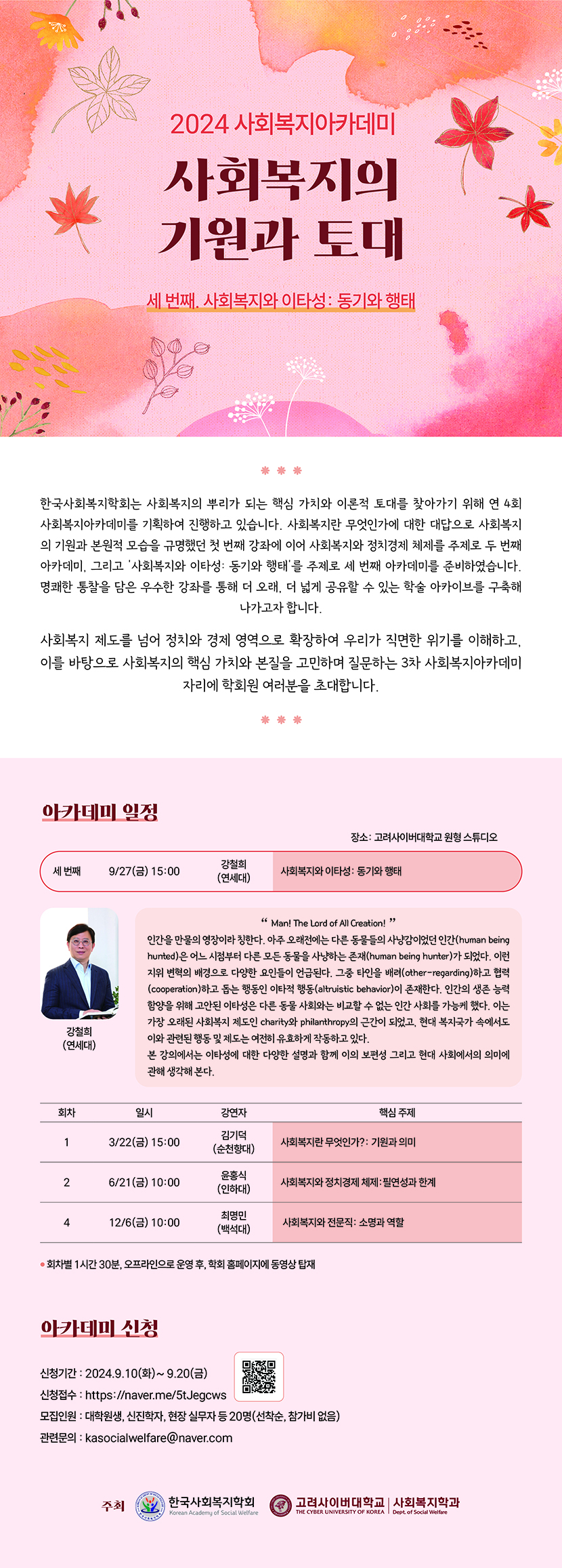 [학술] 사회복지와 이타성: 동기와 행태(3회) 신청 안내 - 2024 사회복지아카데미