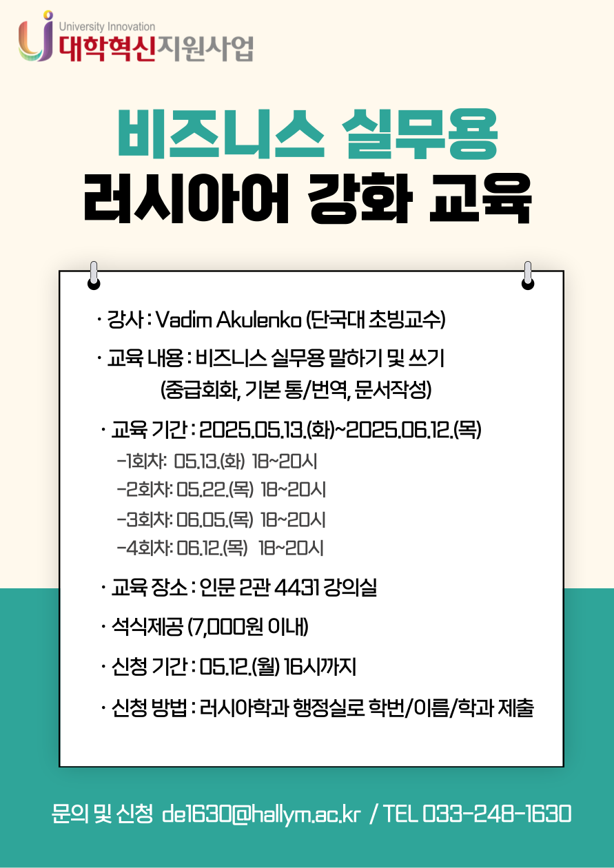 - 주제 : 비즈니스 실무용 러시아어 역량 강화 교육