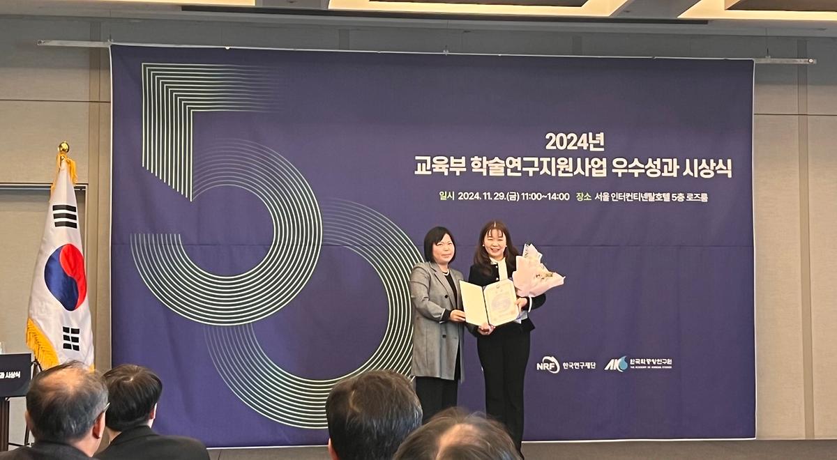 2024년 교육부 학술연구지원사업 우수성과 시상식에서 수상한 하승희 교수(우측)