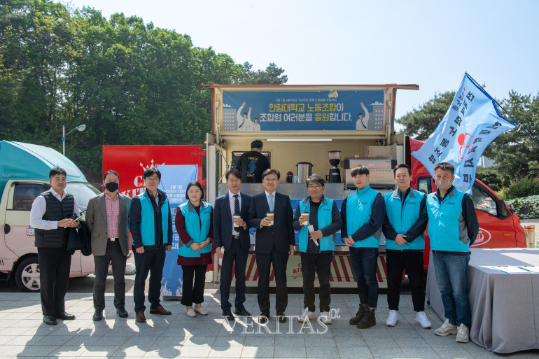 [베리타스알파=박원석 기자] 한림대는 전국대학노동조합 한림대지부와 27일 10시30분 대학본부 앞 잔디밭에서 '근로자의 날'을 축하하는 행사를 진행했다고 이날 밝혔다. 133주년 세계 노동절을 기념하고자 마련된 이번 행사에는 최양희 총장, 신성열 한림대지부장, 박성진 행정지원처장 등 10여 명이 참석해 자리를 빛냈다. 오늘 행사에서는 전국대학노동조합 한림대지부가 마련한 간식을 구성원에게 나눠주며 '근로자의 날'을 기념했다.