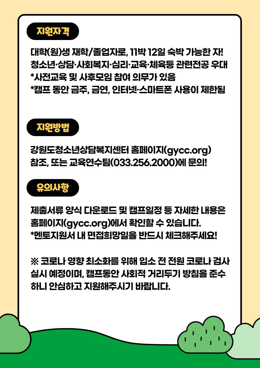 [강원도청소년상담복지센터] 청소년 치유캠프 "대학생 멘토" 모집