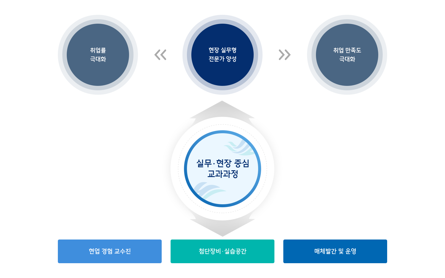 - 실습을 넘어 현실 사회에 유통되는 언론·영상·디지털 콘텐츠 제작 등 실제 미디어 산업현장에서의 활동을 통해 취업 경쟁력을 높이고, 졸업생의 진로 만족도 역시 극대화하고 있습니다.