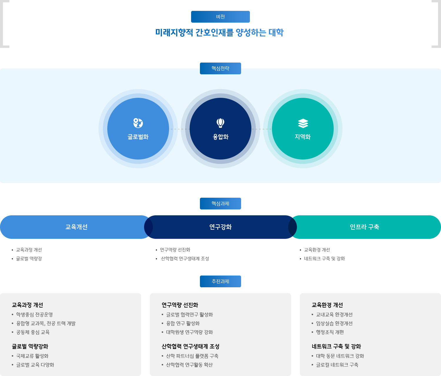 인간존중 정신을 바탕으로 과학적이고 전문적인 간호를 통해 대상자와의 치료적 돌봄 관계를 형성하고 안녕을 촉진하기 위해 풍부한 인간성과 창조성을 지닌 전문직 간호사를 양성한다.